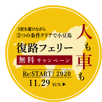 小豆島復路フェリー無料キャンペーンは2020年12月13日に終了いたしました。